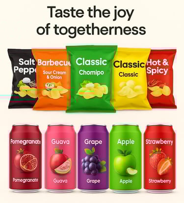 We offer a diverse range of snacks and beverages, including crunchy chips, savory treats, and thirst-quenching drinks made for modern lifestyles. Every product reflects our commitment to quality, taste, and hygiene, ensuring that our customers receive only the best.